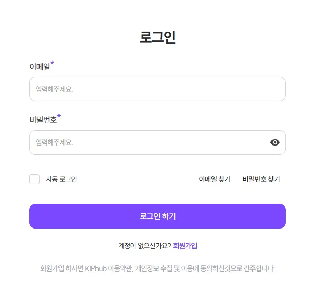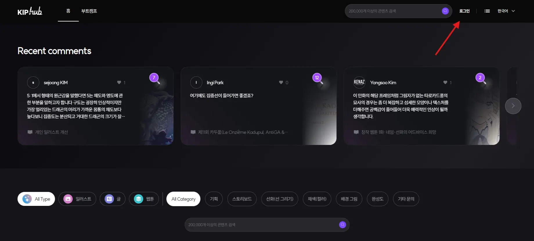KIPhub 오른쪽 위의 로그인을 눌러주세요.