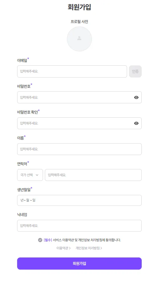 로그인 페이지에서 회원가입을 클릭하면 회원가입을 진행할 수 있습니다.