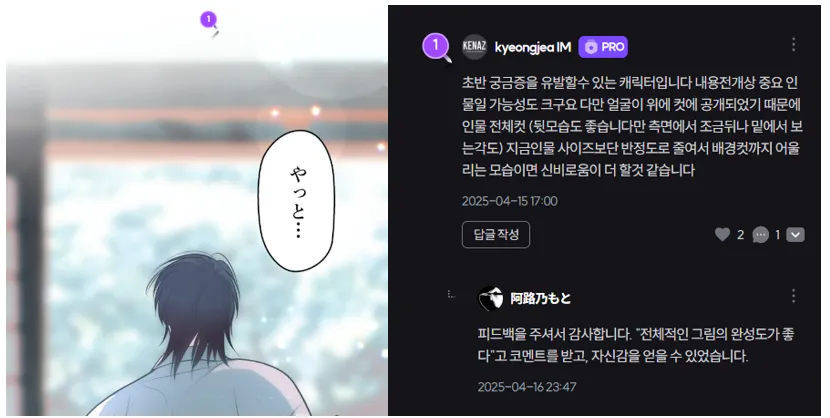 피드백이 달리면 이미지 위의 킵마커,혹은 댓글의 킵마커 아이콘을 클릭하세요.