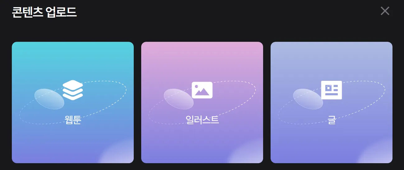 업로드하는 콘텐츠의 유형을 선택해주세요.
