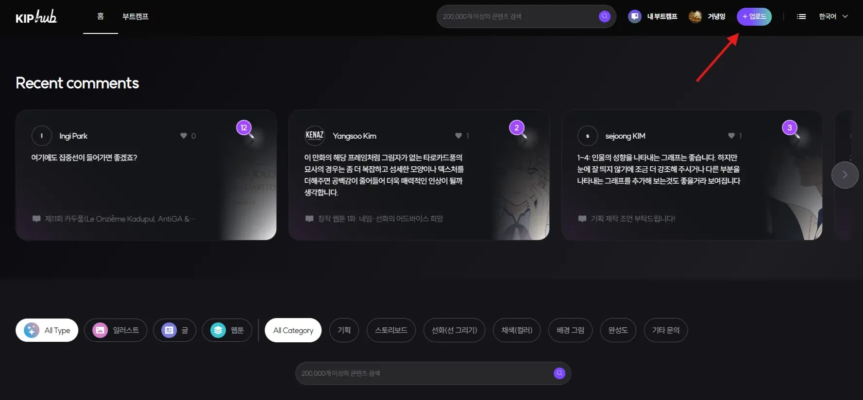 최하단의 저장을 누르면 해당 콘텐츠는 모든 유저가 볼 수 있는 KIPhub의 홈에 업로드 완료됩니다.