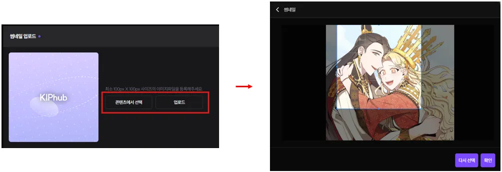 업로드한 콘텐츠, 또는 새로 업로드한 이미지의 구역을 지정하세요.