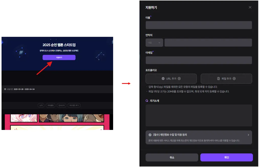 개인정보와 포트폴리오, 추가 인터뷰 내용을 모두 빠짐없이 작성해주세요.